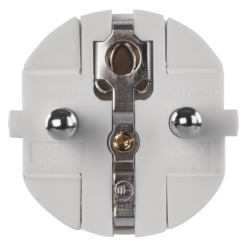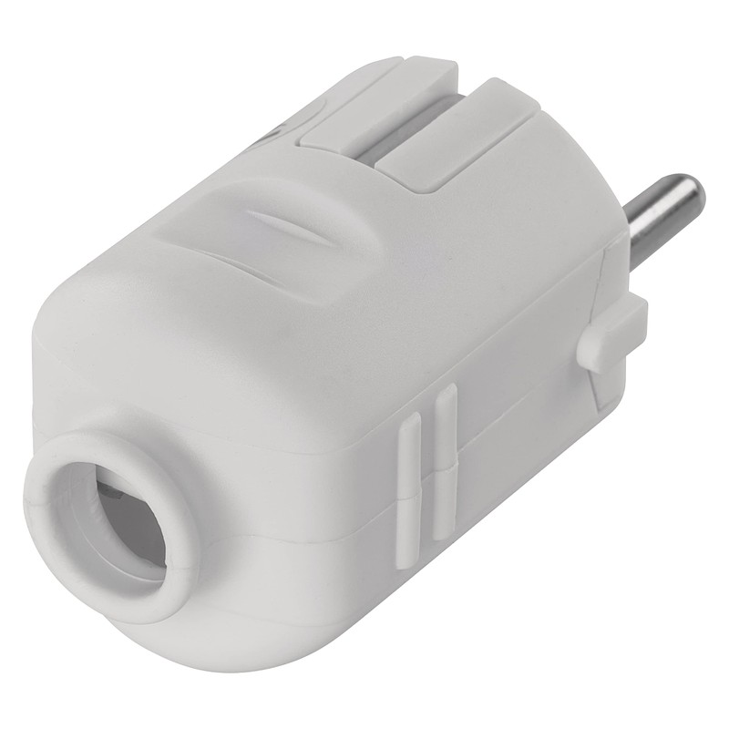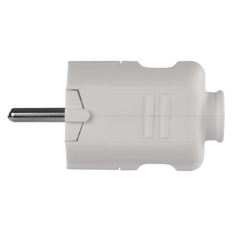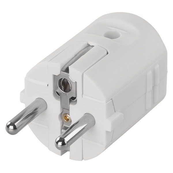 - The white earthing contact plug without cable is made of easy-care and durable plastic and intended for the own production of extension cables or as a spare part