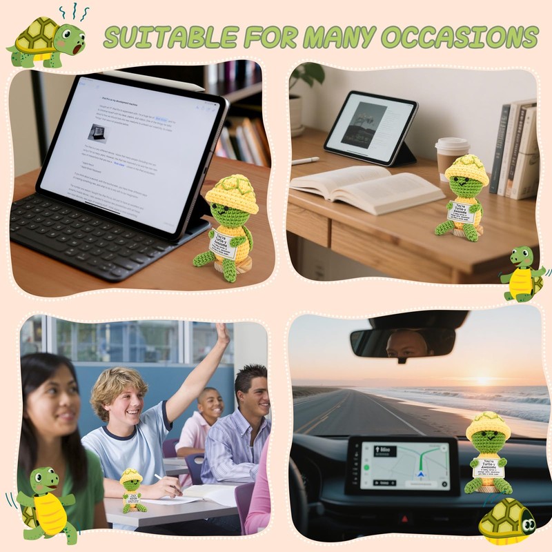 - SIZE INFORMATION: The turtle crochet doll measures 4*2.5 inches and comes with an inspiring text card, suitable for placement on desks, car dashboards, bookshelves, etc