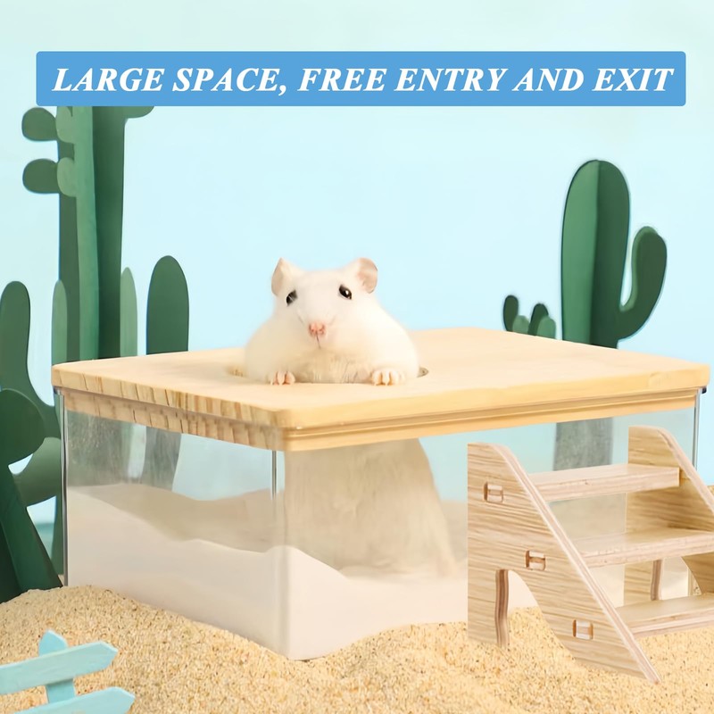 - Easy to Clean: Compared to other plastic litter box, acrylic hamster sand bath kit can be completely cleaned after removing the cover. When it has been washed and dried, add clean sand for your pet to use.
