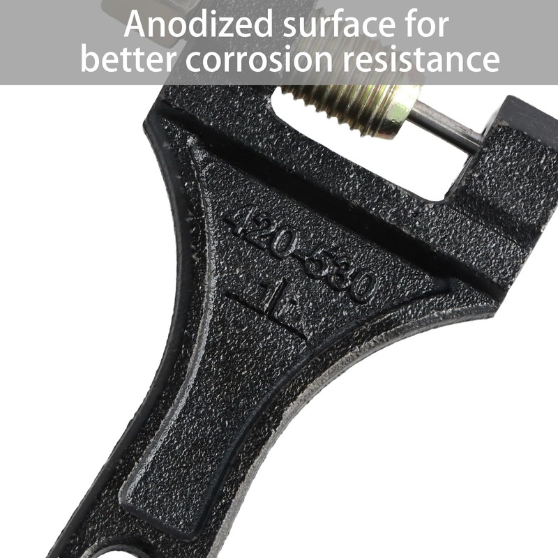 - Material: The chain breaker is made of carbon steel, which provides excellent resistance to wear and tear, ensuring long-lasting performance. The colored zinc and blackened surface treatment enhances the corrosion resistance of the tool.