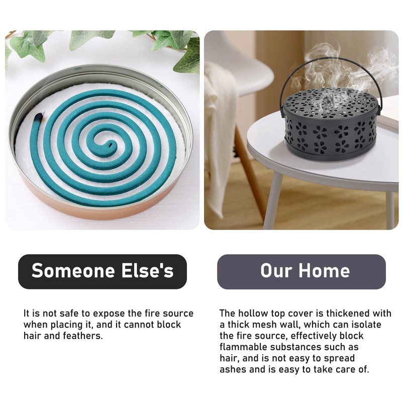 - Wide Applications: This mosquito coil holder is suitable for use in homes, offices, yards, poolside areas, camping sites, yoga rooms, hotels, libraries, etc. to keep mosquitoes and other insects out. You can also light some incense or put it in the toilet to disperse odors.