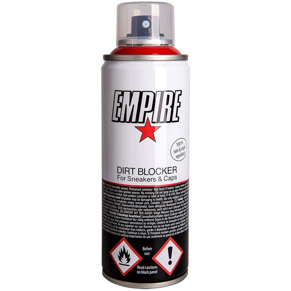 Empire Strikes Back. The easy to use spray is the perfect dirt blocker. Because it creates an invisible protective shield on all surfaces. Whether cola, ketchup or mud – thanks to Empire, the impregnated trainers can be easily rinsed with water. The result: shoes like new. No tedious cleaning. And no more panic attacks due to puddles or mud.