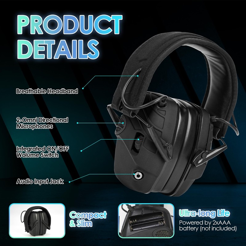 - Smart Technology:Advanced noise reduction and sound amplification technology filter out harmful noises while keeping you aware of your surroundings, perfect for shooting ranges, hunting, or training.