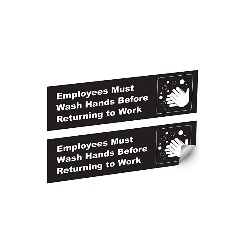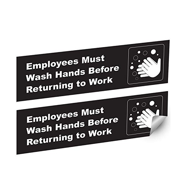 Employees Must Wash Hands Before Returning To Work, 8.75" x 2.5", 2 Pack, Black and White, Self-Adhesive