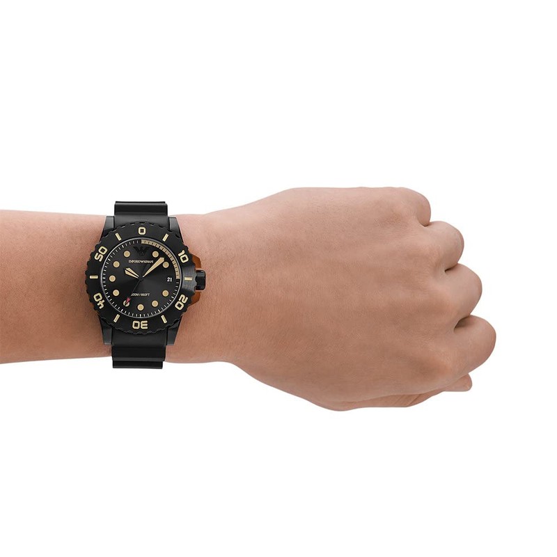 Emporio Armani Watch for men, three-hand date movement, polyurethane watch with a 46 mm case size, Black, Bracelet