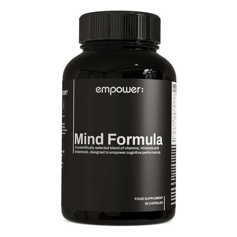 Mind Formula is an easy to take, all-in-one solution. It's scientifically formulated to help you feel clear, sharp, and energised. It's packed with essential vitamins, minerals and adaptogenic herbs to enhance your cognitive function, memory and energy without the use of stimulants. It's suitable for vegans and those with caffiene sensitivities.