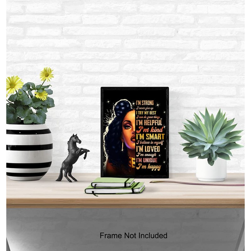 Empowered Black women African American Wall Art - Inspirational Motivational Positive Quotes - I Am Positive Affirmations Home Decor for Afro Teen Girls Bedroom, Girls Room - Encouragement Gifts