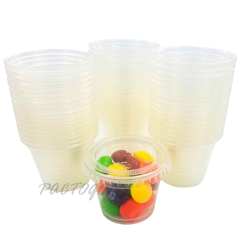 Empress 1 oz. Clear Plastic Disposable Portion Souffle Container Food Cups with Lids (Pack of 50 Sets)