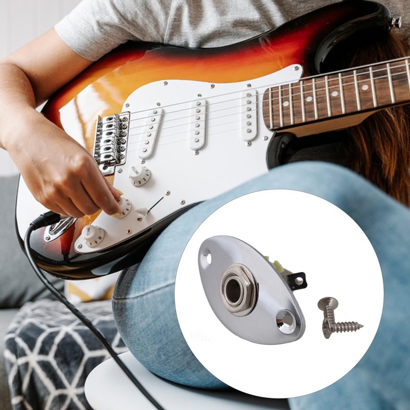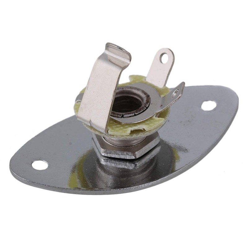 Emptty Chrome Thick Oval Dented Electric Guitar Output Jack Plate Socket, Metal 1/4" Oval Guitar Input Jack Output Plate Jackplate Socket for Electric Guitar Replacement Parts