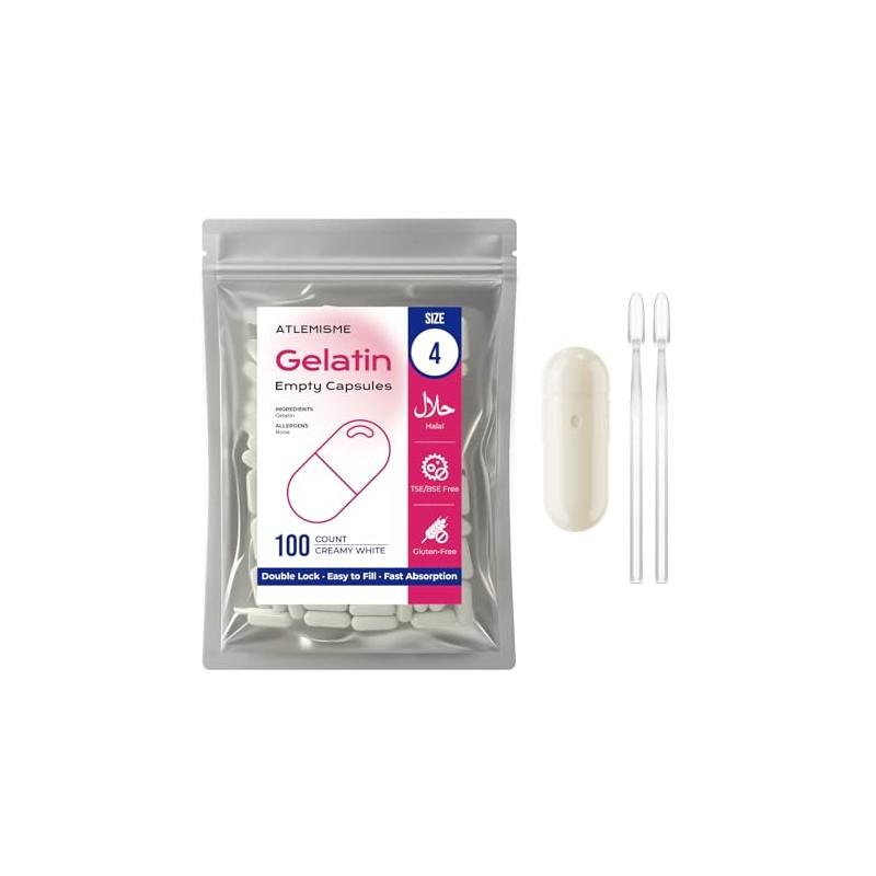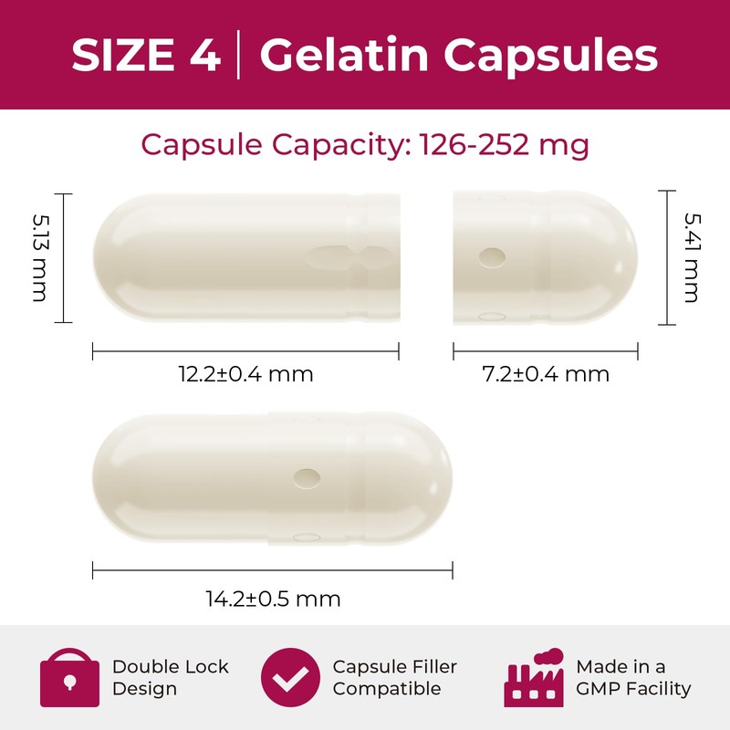 Empty gelatin Capsules Size 4 - (100 Count) Empty Capsules Ideal for DIY Filling - gel Capsules Empty Caps with 2 Filling Spoons for Capsule (Creamy White)
