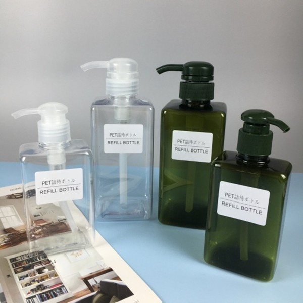 Empty Pump Bottle for Cosmetics & Shampoo, Refillable Liquid Dispenser 200ml Green 450ml (450ml Series) 6ea