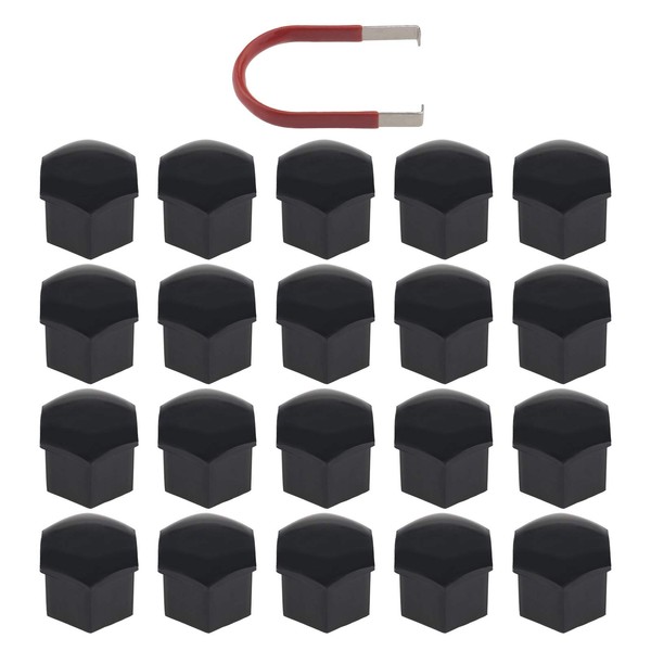 EMSea 20Pcs Black Wheel Nut Caps Hub Bolt Covers 21mm Hexagonal Protectors with Removal Tool Compatible with Range Rover Evoque Ducato