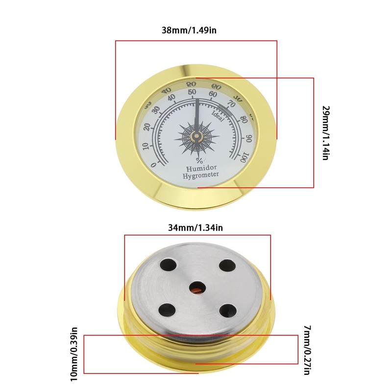 EMSea 2pcs 38 mm Round Alloy Hygrometer for Precise Monitor Guitar Case Cigars Case Greenhouse Wine Cellar Warehouse Filing Cabinet Gold