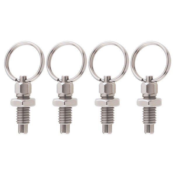 EMSea 4-Piece Spring Plunger with Pull Ring M6 Quick Release Pin Stainless Steel Non-Locking Short Hand Retractable Spring Plunger for Industrial Plants