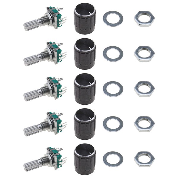 -5 kit of EC11 5-pin rotary shaft transducers. Each kit comes with button cap, nut and washer.