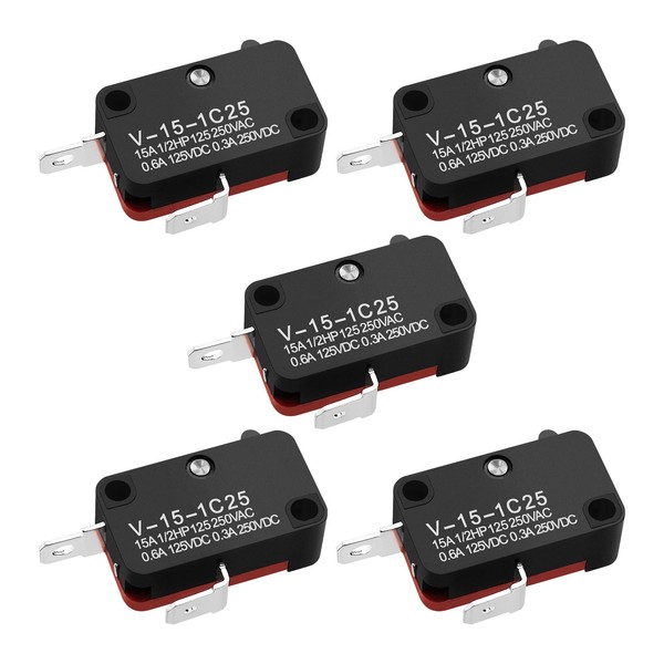 EMSea Pack of 5 V-15-1C25 Micro Limit Switch 2-Pin Momentary Button Switch SPDT Quick Micro Switch Suitable for Electrical and Electronic Devices