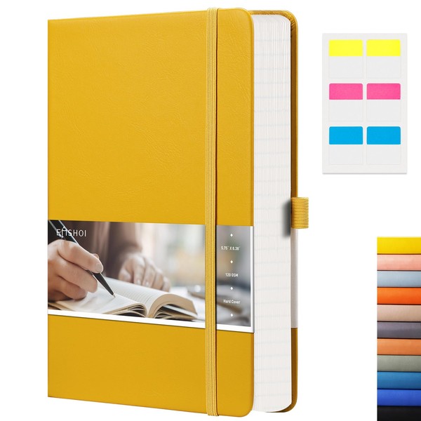 EMSHOI Graph Paper Notebook - 256 Pages A5 Graph Notebook/Journal, Square Grid Notebooks for Work, 120gsm Thick Paper, Executive Hardcover Leather, Inner Pocket, Pen Loop 5.75'' × 8.38''-Yellow