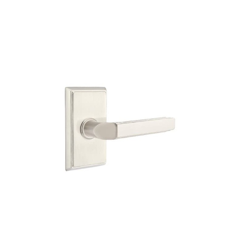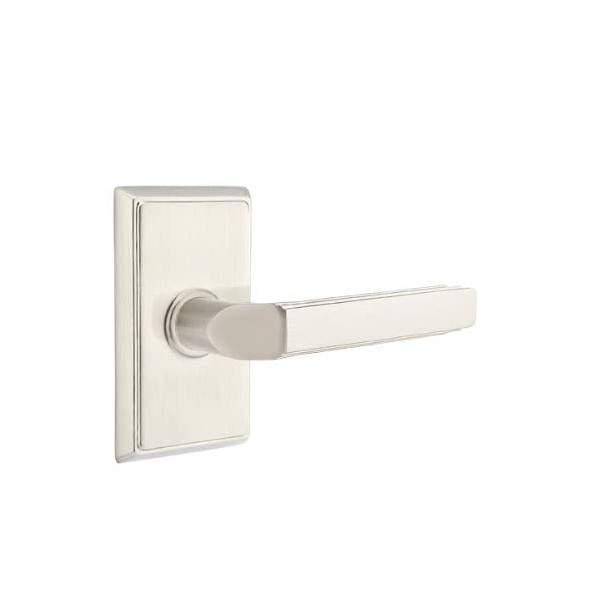 Emtek Passage Set, Rectangular Rosette, Milano Lever (Right Hand, Satin Nickel)