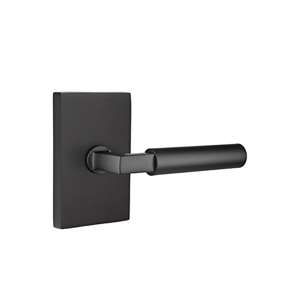 Emtek Privacy Set, Modern Rectangle Rosette, Hercules Lever, Right Hand, Flat Black