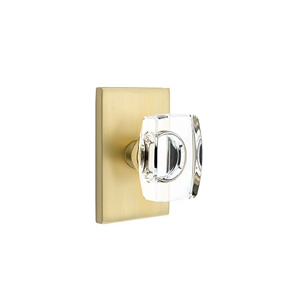 Emtek Privacy Set, Modern Rectangle Rosette, Modern Windsor Crystal Knob (Satin Brass)