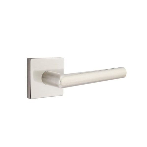 EMTEK Square Rosette Privacy Set with Matching Finish Stuttgart Lever - Choice of Left/Right Handing and 7 Finishes - 5210STURHUS15 - Right Handed (RH) - Satin Nickel (US15)