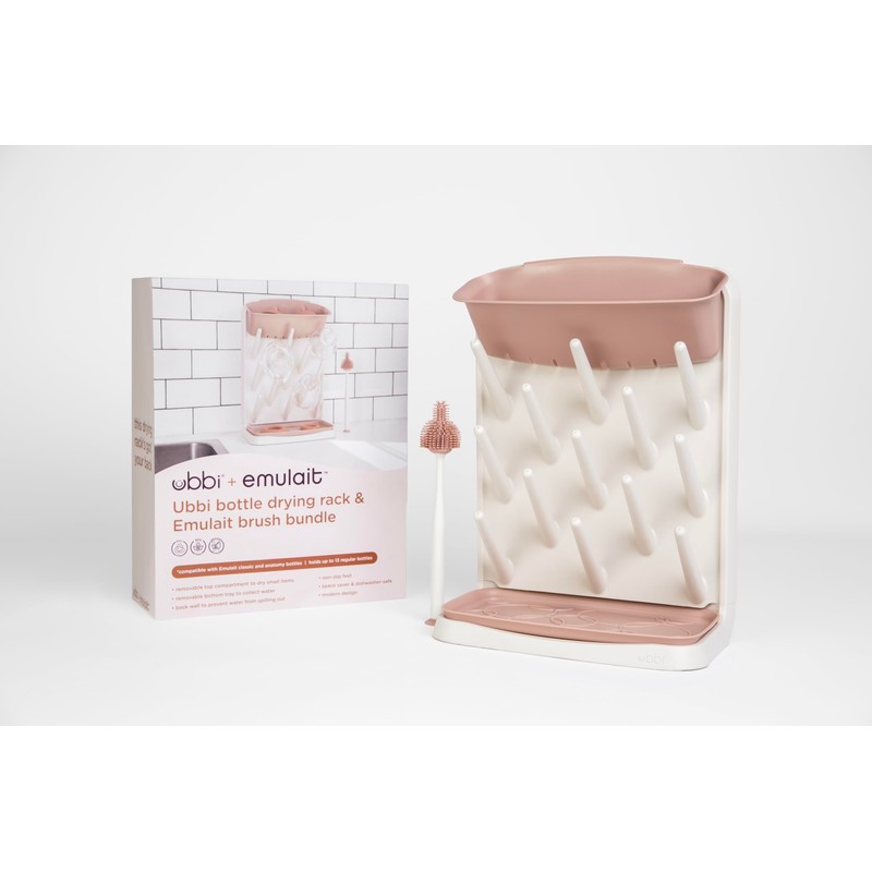 - The Ubbi Drying Rack is designed with premium sturdy materials. The slanted arms help ensure optimal air flow for thorough and hygienic drying. Caps, lids, nipples and pacifiers can be stored in the top compartment.