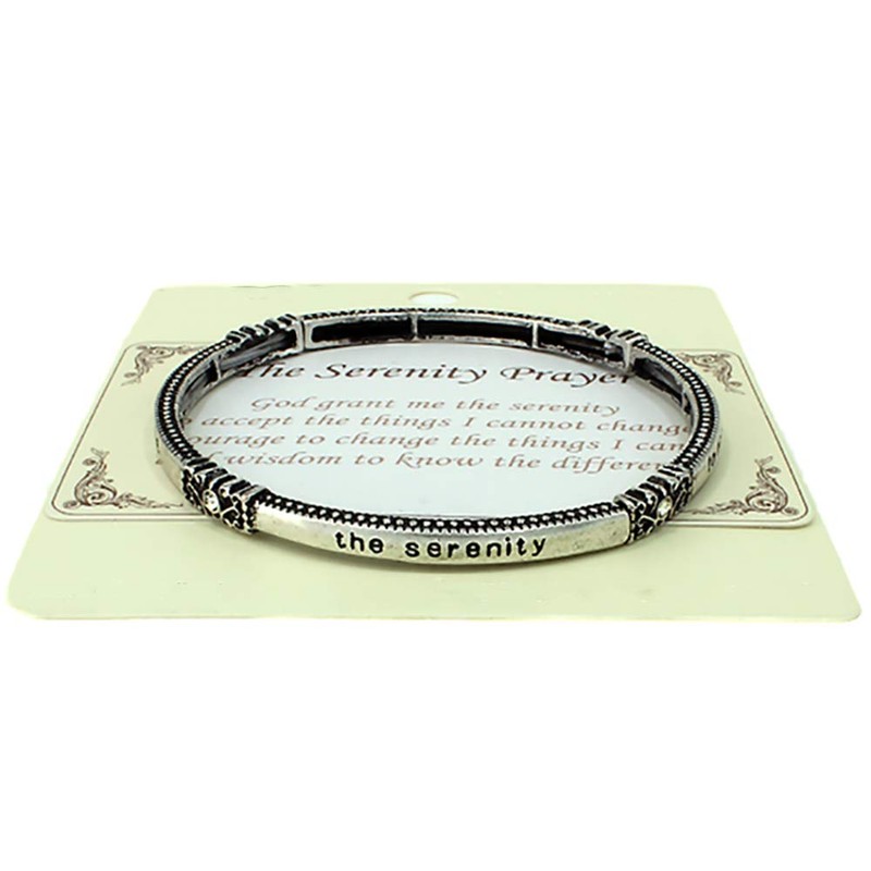 Emulily Serenity Prayer Inspirational Stretch Bangle Bracelets with Rhine stone