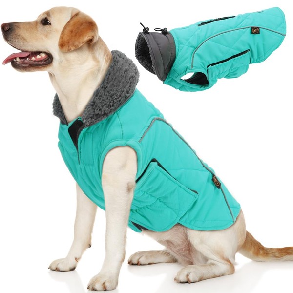 EMUST Dog Coats Winter, Thick Dog Clothes for Medium Dogs Boy, Coats for Dogs Winter with Harness Hole, Dog Coats for Cold Weather, Turquoise, M
