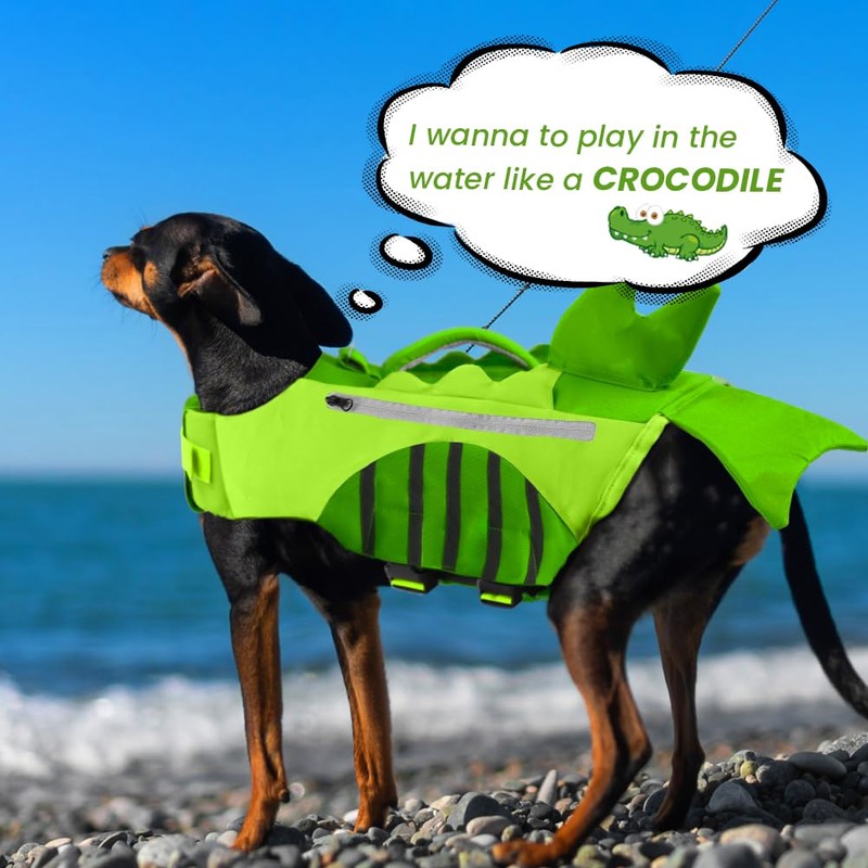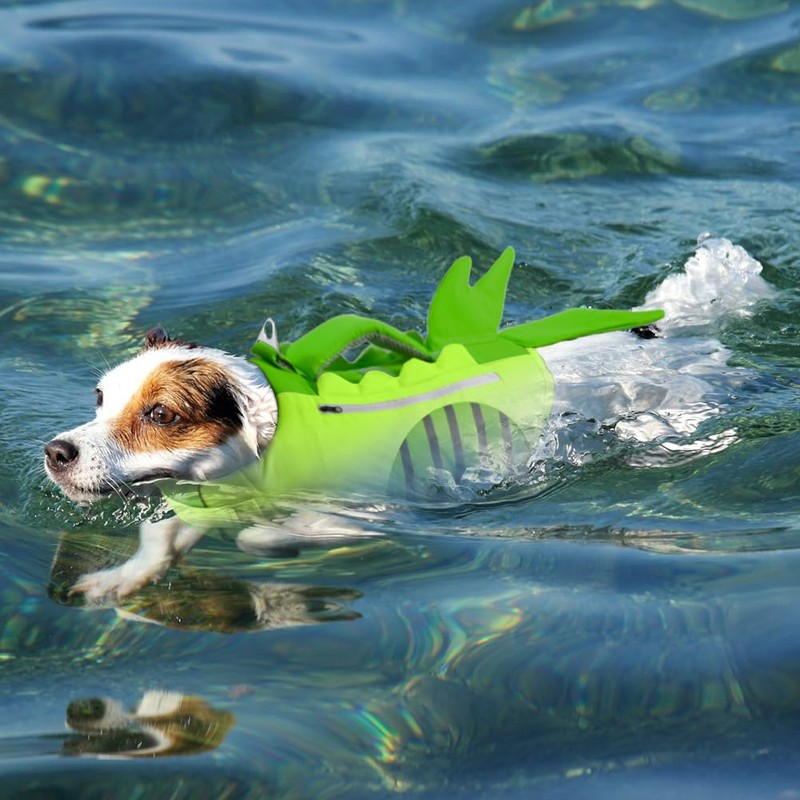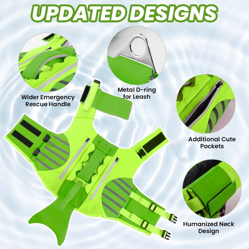 - Eye-Catching&Functional Design: The cute dog life vest is constructed with both Shark and Mermaid Tail, which is eye-catching when you take your dog outside in summer. In addition, the 2 Practical Pockets, which can be placed dog poop bag or small toys.