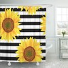 Emvency 72"x72" Shower Curtain Waterproof Home Decor Brown Bright Sunflowers On Striped Black and White Pattern Orange Sun Beautiful Picture Print Polyester Fabric Adjustable Hook Set