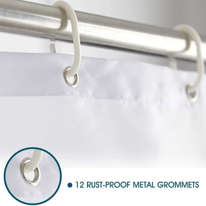 • MATERIAL: 100% polyester fabric, water proof. Not see-through, protect your privacy always. Includes 12 plastic curtain hooks.