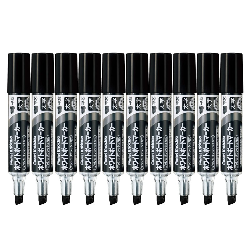 ぺんてる ホワイトボードマーカー ノックル EMWL6W-A 平芯太字 黒 【10本セット】