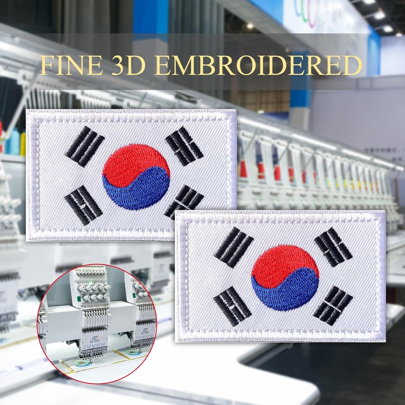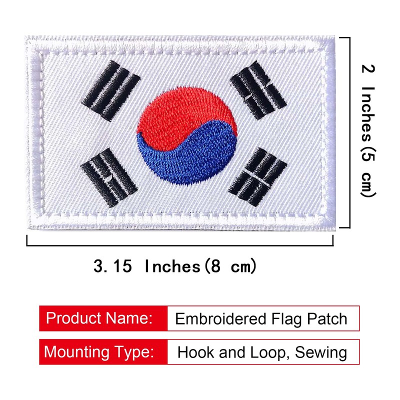 - 2 PCS South Korea Flag Patches,Embroidered,Size:3×2 inches (8×5 cm),Hook and Loop,Comes with a Loop Tape of the same size;