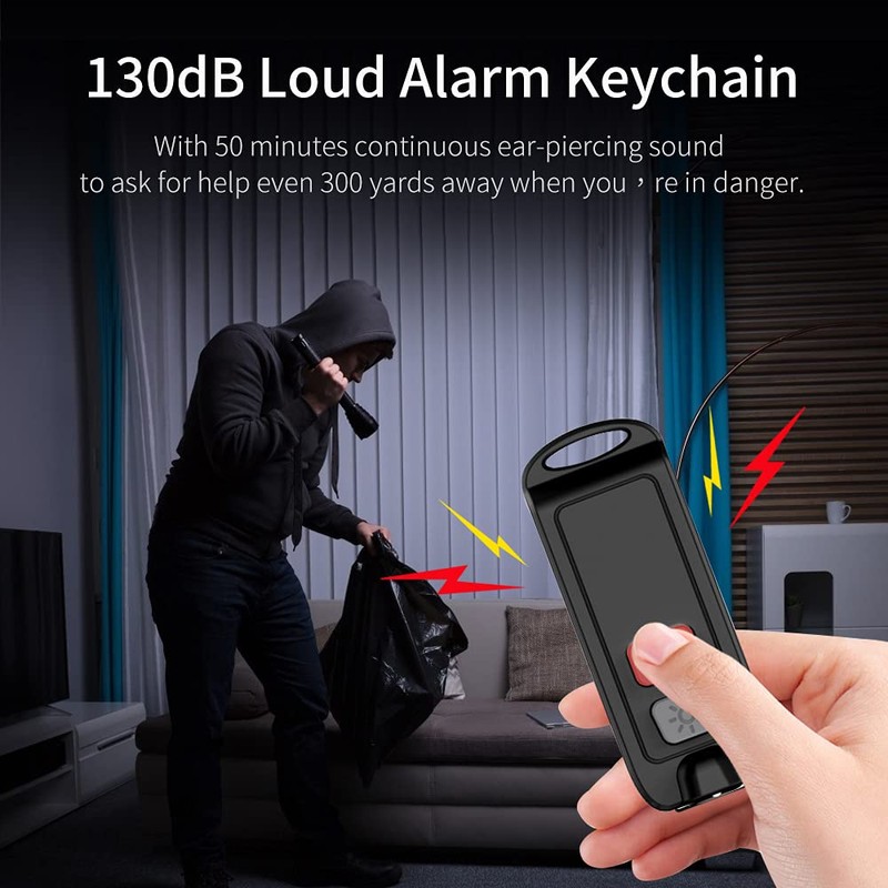 eMylo 130dB Personal Security Alarm, Rechargeable Self Defense Alarm Keychain Emergency LED Flashlight for Women, Elderly, Kids (Black, 1 Pack)