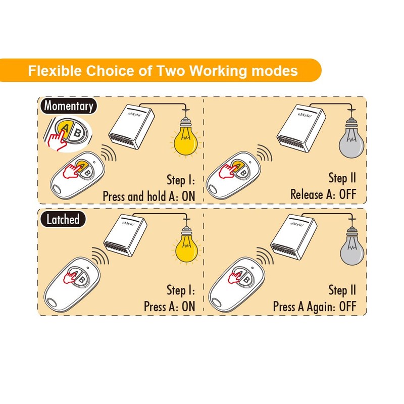 eMylo DC 12V 2CH 433Mhz RF Wireless Relay Remote Control Light Momentary Switch Transmitter with Receiver