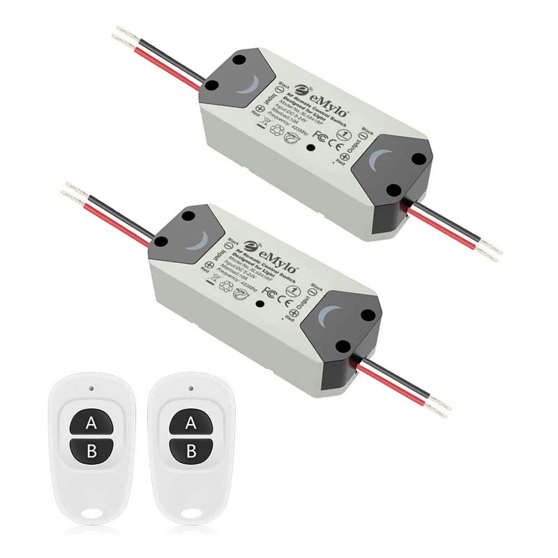 eMylo Smart Wireless Relay Switch DC 12V RF Relay Module One 1-Channel Remote Control Switch 5V-24V RF Switch Home Automation 433Mhz with Two Transmitters 2 Pack