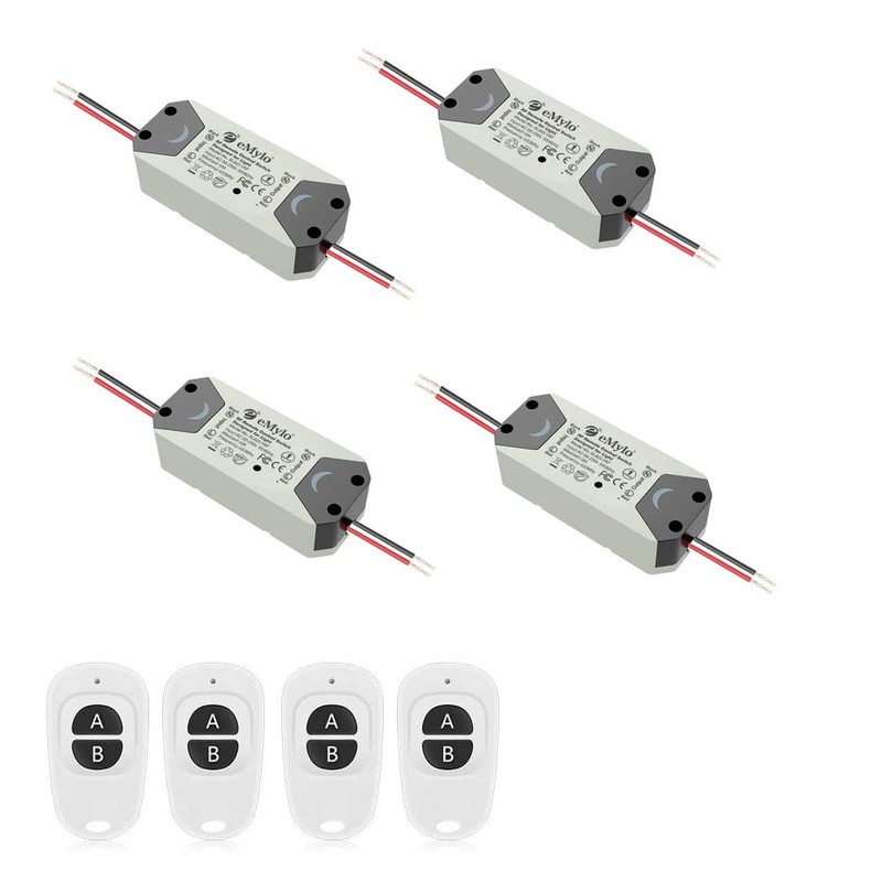 eMylo Smart Wireless RF Remote Control Switch 220V Relay 1000W One 1-Channel RF Relay Switch 90-250V Home Automation 433 MHz with Two Transmitters 4 Pack