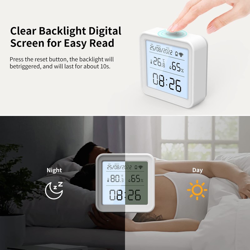 - Works with Alexa and Google Assistant: You can freely switch the temperature unit between °F and °C via app. The WiFi thermometer and hygrometer sensor supports Alexa to query the temperature and humidity, e.g.: Alexa, how is the temperature in the living room