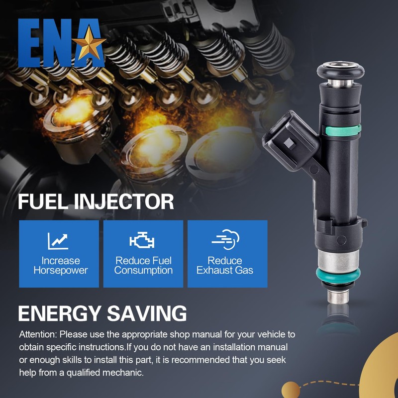 - ENA Fuel Injectors Specifications: 1. Fuel Injector Type: MFI Injector; 2. Terminal Quantity: 2; 3. Terminal Gender: Male; 4. Terminal Type: Blade; 5. O-Rings Included: Yes, preinstalled. The ENA 5.4 injector set, a direct-fit replacement that allows for easy installation, integrates a composite - material nozzle for enhanced durability and extended service life