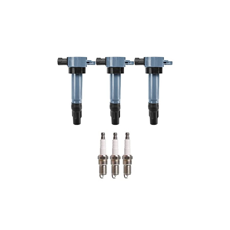 ENA Ignition Coil Pack and Spark Plug Set of 3 Compatible with Smart Fortwo 1.0L Replacement for UF681