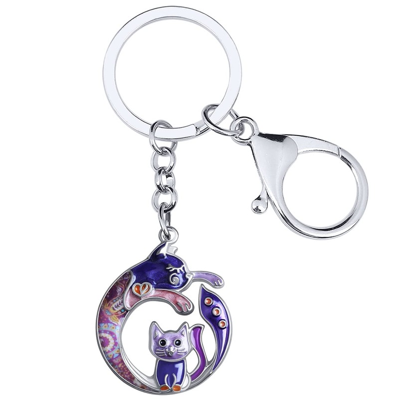 Enamel Alloy Mothers Day Cat Keychain Mom Gifts Kitten Charms for Women Girls Bag Wallet (Purple)