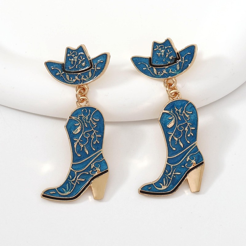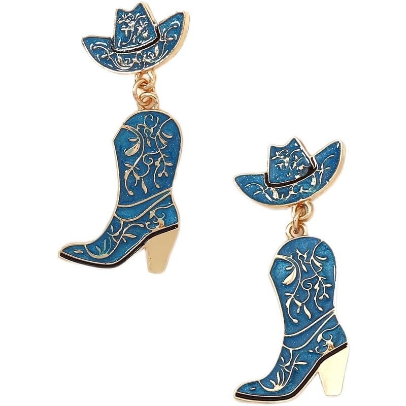Enamel Cowgirl Earrings Western Cowboy Boots Earrings for Women Dainty Shoes Dangle Drop Earring Charm Dangling Party Decor Jewelry (Blue, One size)