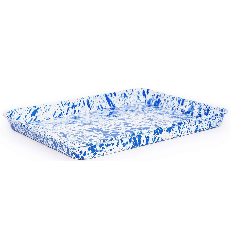 Enamelware Jelly Roll Pan, 16.25 x 12.5 inches, Blue/White Splatter