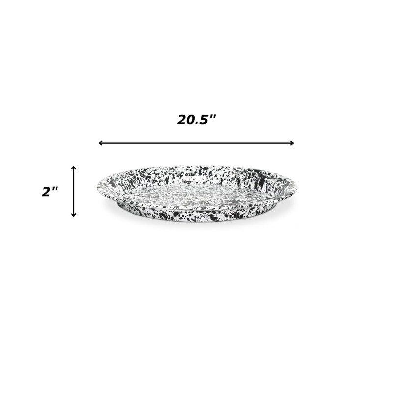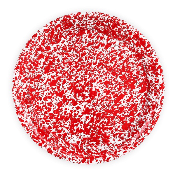 Enamelware Large Round Tray, 20.5 inch, Red/White Splatter