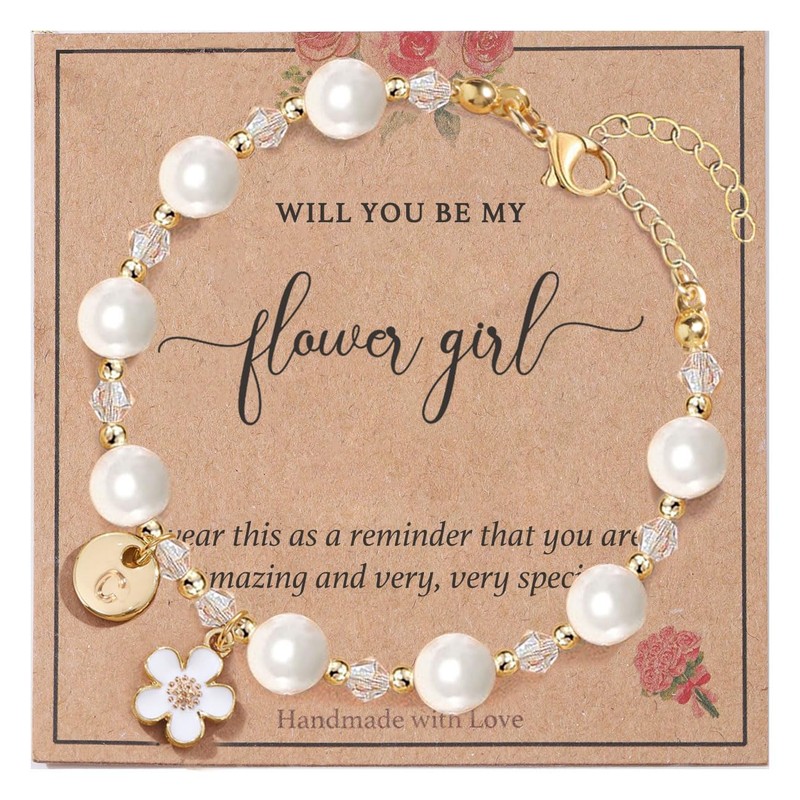 - ❤【Exquisite package】❤This beautiful & lovely pearl bracelet comes with a meaningful message card and is packaged in a beautiful jewelry box.The card writing ”will you be my flower girl?” It is readying for as a gift to express your good faith Invite flower girl to your wedding.