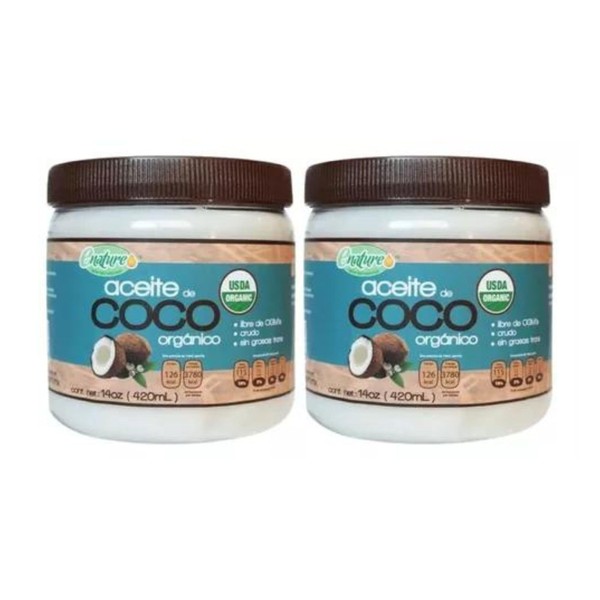 - 2 Pack Aceite De Coco Extra Virgen Enature Crudo Olor Sabor De 420ml c/u
