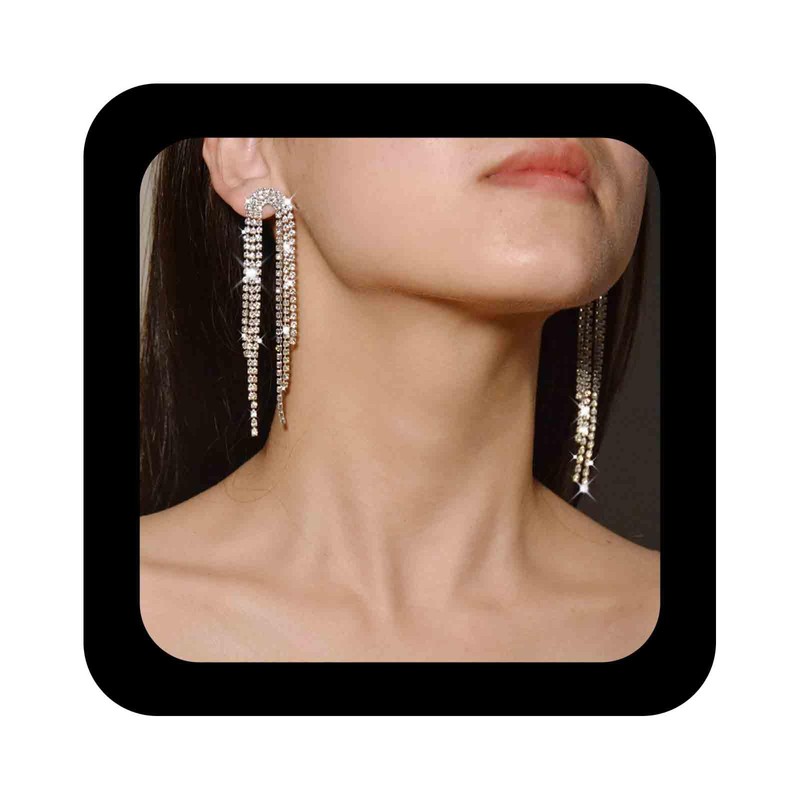 - Long tassel crystal earrings as shown in the pictures, fits most women, simple and elegant