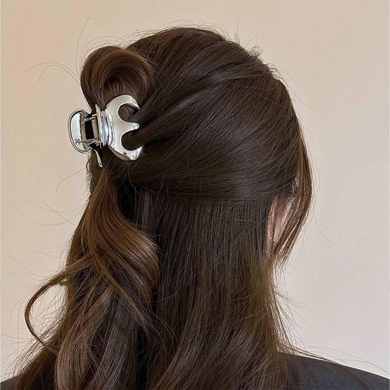 Enautoabs Silver Hair Clip Hair Clip for Women Metal Medium Hair Clamp Claw Ponytail Holder Hair Clamp Pine Strong Non-Slip Hair Clip for Thin Hair Decorative Hair Accessories