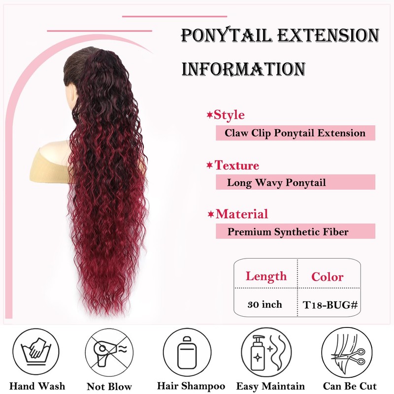 ENBEAUTIFUL 30" Claw Clip Ponytail Extension Long Wavy Ponytail Extension Synthetic Pony Tails Hair Extensions Clip in Hair pieces for Women T1B/bug