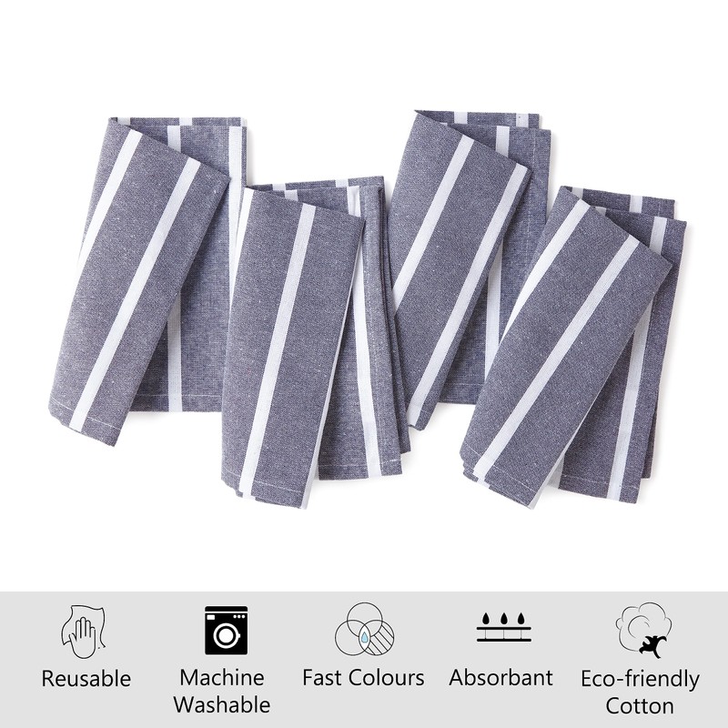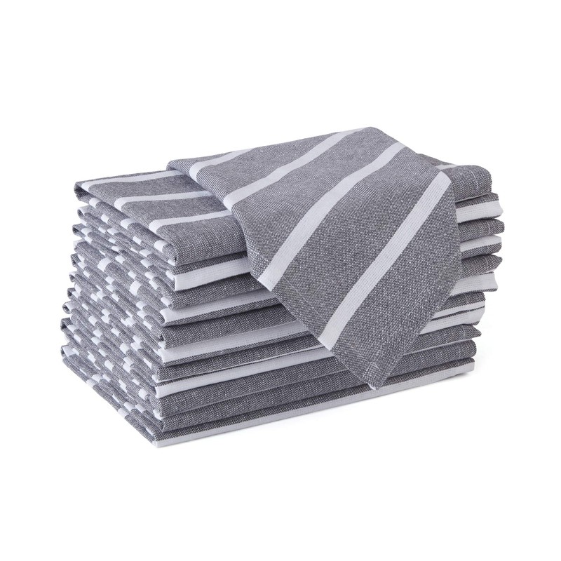 Encasa Homes Dining Table Napkins Set of 12 Large 43 x 43 cm (17 x 17 inches) - Roma Grey Stripes - Absorbent Party Fabric Made of Heavy Cotton Machine Washable for Home Restaurant
